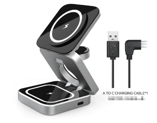3 In 1 Foldable Magnetic Wireless Charger Stand -